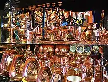 A pesar de que el cobre se trabajó en algunas partes de Mesoamérica, el origen de las tradiciones modernas provienen de influencia española.[30] En un principio, los trabajos con cobre eran ignorados por los conquistadores españoles, ya que buscaban oro y plata. El cobre era mandado a tierras españolas, sin embargo, no tanto como el oro y la plata. Pero con el tiempo el cobre tuvo su importancia debido a que se crearon diversos utensilios, especialmente domésticos como ollas y sartenes.[16] Actualmente, el centro de trabajos de cobre en México es el estado de Michoacán, especialmente el municipio de Santa Clara del Cobre. Uno de los objetos de cobre tradicional es un gran recipiente en el que se derrite la grasa de cerdo o se carameliza el azúcar para la fabricación de caramelos. Cada año durante el mes de agosto, Santa Clara del Cobre celebra el festival del cobre.[31]