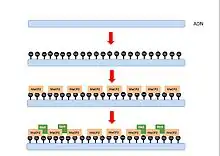 - La metilación de mantenimiento añade grupos metilo a cadenas de ADN en lugares opuestos a los metilados en la cadena madre, provocando que las moléculas hijas de ADN mantengan un patrón de metilación después de la división celular.[7]