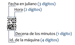 Es decir, que un viaje hecho el 10 de noviembre a las 18:33 h de un año no bisiesto cancelado por la máquina 0028 aparece así: