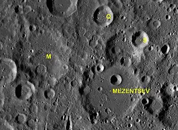 Por convención estos elementos son identificados en los mapas lunares poniendo la letra en el lado del punto medio del cráter que está más cercano a Mezentsev.