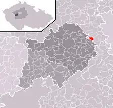 Se encuentra ubicada al oeste de la región y de Praga, en la cuenca hidrográfica del río Berounka —un afluente izquierdo del río Moldava—, y cerca de la frontera con la región de Pilsen.[1]