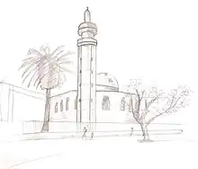 En el exterior de la mezquita está el minarete, una alta y esbelta torre situada en la esquina oeste de la estructura. Desde aquí se efectúa el canto para la oración o adhan, con el que se llama a los fieles para que accedan al salón para comenzar la oración. Se debe orar cinco veces al día con los fieles postrados en dirección a La Meca. La punta del minarete es siempre el punto más alto de las mezquitas que lo poseen.