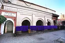 El complejo de la mezquita incluía originalmente una madrasa independiente pero cercana, que contaba con 28 habitaciones para alojar a los estudiantes. Estaba dispuesta alrededor de un pequeño patio y su arquitectura era aparentemente más modesta que la de la famosa Madrasa de Ben Youssef de la época saadí. Fue sustituida posteriormente por una residencia para mujeres de la aristocracia saadí.[6]