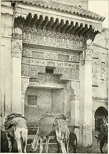 Sin embargo, el patio (sahn) de la mezquita saadí era más grande que en las mezquitas almohades anteriores, siendo casi igual o incluso ligeramente más grande que la sala de oración interior (a diferencia de las mezquitas almohades, donde los patios eran proporcionalmente mucho más pequeños). [10] Además, la orientación de la alquibla de la mezquita (que debía estar alineada con la [alquibla|dirección de la oración]]) se desplazó más hacia el Este que antes, más cerca de la alquibla "verdadera" (la dirección de La Meca) y lejos de la alineación predominante hacia el sur de las mezquitas almohades.[7][10] Ambos cambios habían comenzado durante el sultanato benimerín anterior, pero los saadíes los llevaron más lejos y, en el proceso, consolidaron la forma de las mezquitas marroquíes a partir de entonces.[9][10]
