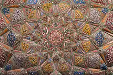 La sala de oración principal contiene un pabellón cuadrado sobre el que descansa la cúpula más grande de la mezquita, una forma persa conocida como Char Taq.[28] En la parte interior de la cúpula hay frescos que representan árboles en parejas, jarras de vino y bandejas de fruta, que son alusiones al concepto islámico del paraíso.[21]