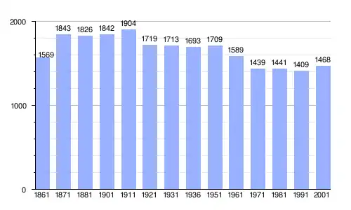 | Gráfica de evolución demográfica de Mezzanino entre 1861 y 2001 |