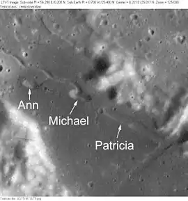 Cráteres Ann, Michael y Patricia (imagen LRO)