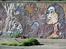 ![]() Mural dedicado a Michelle Peña en la ribera del río Mapocho. | ||