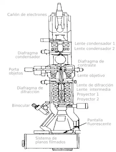Las partes principales de un microscopio electrónico de transmisión son: