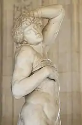 A finales de 1494, la situación política en Florencia era más calmada. A su regreso a Florencia, la ciudad, anteriormente bajo la amenaza francesa, ya no se encontraba en peligro después de que Carlos VIII sufriera las derrotas. Miguel Ángel volvió pero no recibió más encargos por parte del nuevo gobierno de la ciudad regido por Savonarola y volvió a trabajar para la familia Médici.[6] Durante el medio año que pasó en Florencia, trabajó en dos pequeñas estatuas, una del joven San Juan Bautista y otra de cupido dormido.