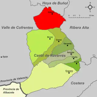 ![]() Extensión del municipio en la comarca de la Canal de Navarrés.