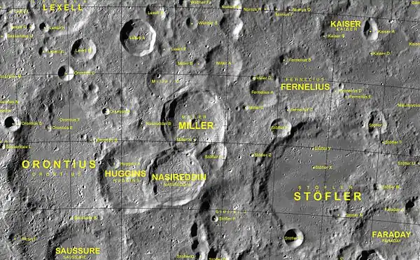 Por convención estos elementos son identificados en los mapas lunares poniendo la letra en el lado del punto medio del cráter que está más cerca de Miller.