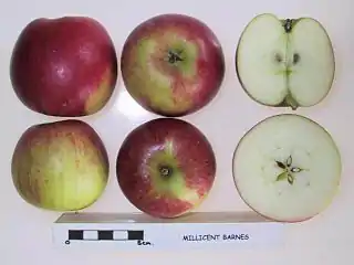 Millicent Barnes es el nombre de una variedad cultivar de manzano (Malus domestica).[1][2][3] Un híbrido de manzana diploide resultado del cruce de 'Cramoisie de Gascogne' x 'Cox's Orange Pippin' en 1903. NF Barnes, jardinero jefe del duque de Westminster en Eaton Hall, Chester, Cheshire Inglaterra. Comercializado en la década de 1920 por el vivero "Clibrans de Altrincham". Las frutas tienen una pulpa blanco verdoso, con textura de grano fino, crujiente, firme, con un sabor jugoso, picante y muy suave.[4]