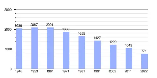 Hasta 2022 la población era de 771 habitantes,[3] con una densidad de población de 38,85 habitantes por kilómetro cuadrado.[3]