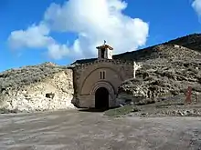 La iglesia del barrio minero de La Azufrera se halla bajo la advocación de Santa Bárbara, es un oratorio excavado en la roca del monte con fachada de piedra y espadaña que mira al poniente, abierto en un altozano con placeta, donde se hallaba el edificio de las antiguas Escuelas: