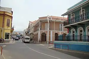 El centro colonial se sitúa frente al puerto y bajo el cerro del Fortim d'el Rei. Se organiza alrededor de la Pracinha da Igreja, donde se ubican el Ayuntamiento y la iglesia de Nuestra Señora de la Luz, construida en 1862. La Rua Libertadores de África, conocida popularmente como Rua Lisboa, que une el puerto y el Palacio del Pueblo (antigua residencia del Gobernador), es el eje principal del centro histórico, y en ella se encuentran el Mercado Municipal, la Biblioteca, el Centro Cultural y los principales bancos. Este centro está rodeado de zonas residenciales más recientes, de nivel económico medio-alto. En las décadas recientes, áreas antaño populares, como los barrios de Che Guevara, junto a Laginha, y Fonte do Meio y Alto de São Nicolau, colindantes con aquel, también han evolucionado hacía un tipo de viviendas de nivel elevado, residencia de un gran número de emigrantes regresados, igual que, hasta cierto punto, Alto Santo Antonio. El barrio de Chã do Monte do Sossego consiste casi exclusivamente en bloques de apartamentos, residencia de grupos sociales pudientes, como funcionarios y jóvenes profesionales.