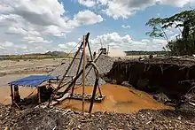 La minería ilegal o extracción ilegal de minerales es una actividad económica recurrida en Perú, que consiste en la explotación de minerales metálicos (como el oro), y no metálicos (arcilla, mármoles, entre otros) para el financiamiento de organizaciones delictivas.[1] Tiene su origen a finales de los años 1970 con el surgimiento de la informalidad en ese sector.[2] Se caracteriza por no tener control ni regulación social y ambiental, que comparte el sector artesanal en el país.[3]