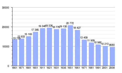 | Gráfica de evolución demográfica de Minervino Murge entre 1861 y 2008 |