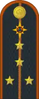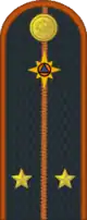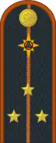 | Teniente inferior | Teniente | Teniente superior | Capitán | Mayor | Teniente coronel | Coronel | Mayor general | Teniente general | Coronel general |