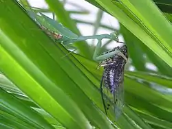 Miomantis caffra es una especie de mantis de la familia Mantidae. Esta especie se ha descubierto recientemente en Portugal, junto con Miomantis paykullii, el tráfico de especies exóticas o terrariofilia, es la causa de que muchos ecosistemas se vean afectados, tanto por la introducción de especies invasoras como por la recolección de animales en su hábitat natural.
