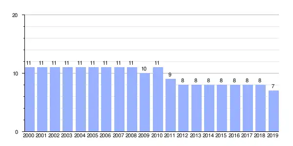 | Gráfica de evolución demográfica de Mira (aldea) entre 2000 y 2019 |