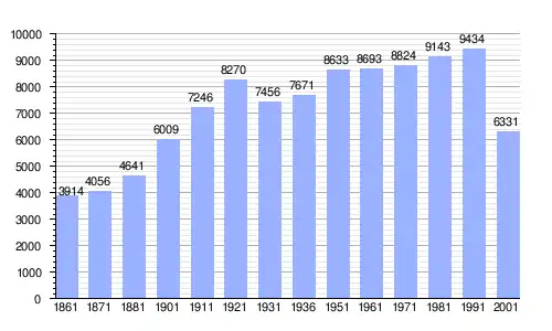 | Gráfica de evolución demográfica de Mirabella Imbaccari entre 1861 y 2001 |