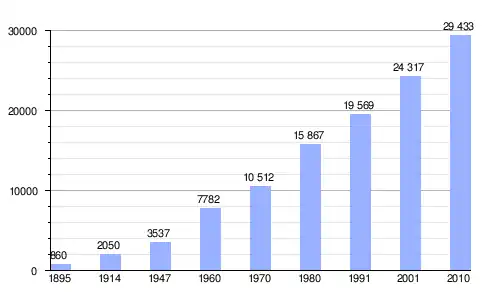 | Gráfica de evolución demográfica de Miramar entre 1895 y 2010 |