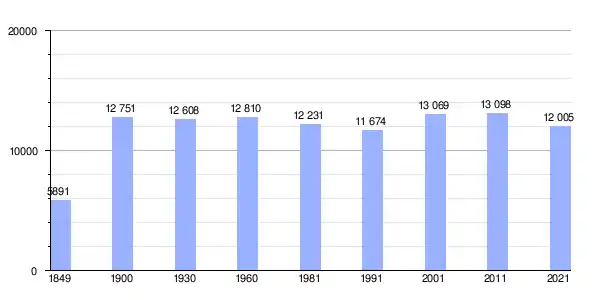 | Gráfica de evolución demográfica de Miranda do Corvo entre 1849 y 2021 |