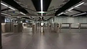 Los sitios de construcción han estado abiertos desde julio de 2007, lo que implica el cierre parcial de la plaza y el desplazamiento de la terminal de autobuses. La estación se completó en diciembre de 2014, las pruebas comenzaron el 30 de abril de 2015[3] y su apertura tuvo lugar el 29 de junio de 2015.