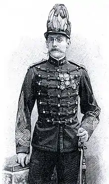 Al mando estaban el capitán Paul Voulet (1866-1899) [1] y su ayudante, el teniente Julien Chanoine (1870-1899). [2] Sus colegas oficiales decían que el capitán, hijo de un médico de 32 años, mezclaba "un verdadero amor por la sangre y la crueldad, junto con una sensibilidad a veces tonta"; mientras que el teniente, hijo del general y futuro ministro de Guerra Charles Chanoine, fue juzgado impulsivo, despiadado y "cruel por sangre fría y por placer". Ambos ya habían demostrado su crueldad y eficacia dos años antes, cuando invadieron los reinos mossi y conquistaron su capital, Uagadugú. [3]