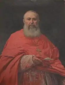 ![]() Escudo cardenalicio de Charles Martial Lavigerie. En el centro del mismo se encuentra el escudo de los padres blancos y las hermanas blancas, fundados por él. | ||