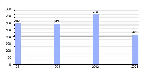 | Gráfica de evolución demográfica de Mislodežda entre 1981 y 2021 |