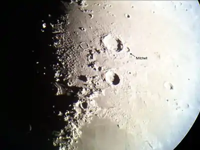 Mitchell es un cráter de impacto lunar que se une al borde este del cráter más grande y más prominente Aristóteles.