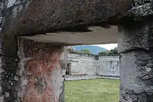 Para el acceso a la casa cural se construyó un pórtico sostenido por dos columnas monolíticas procedentes del conjunto mayor al Sur. Dicha reutilización con fines religiosos perdió efecto con el paso del tiempo, a excepción del templo de San Pablo debido a lo establecido en las Leyes de Reforma donde se decretó la Ley de Nacionalización de los bienes Eclesiásticos emitida durante el periodo de gobierno del Presidente Benito Juárez en 1859.