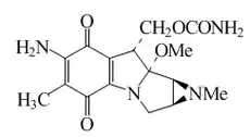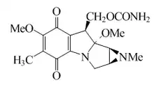 Las mitomicinas son una familia de antibióticos alcaloidales aziridínicos aislados de Streptomyces caespitosus o Streptomyces lavendulae[1] La mitomicina C (MMC) es un agente quimioterapéutico en virtud a su actividad antitumoral y antibiótica. Se administra por vía intravenosa para tratar varios tipos de cáncer, tales como carcinoma esofágico, cáncer anal y cáncer de mama. También es utilizado para instilaciones del cáncer de vejiga. Provoca toxicidad diferida de la médula ósea y por lo tanto, normalmente se administra a intervalos de 6 semanas. Su uso prolongado puede provocar daño permanente en la médula ósea. Puede provocar fibrosis pulmonar y falla renal.