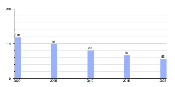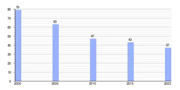 | Gráfica de evolución demográfica de Mociños (parroquia) entre 2000 y 2023 |