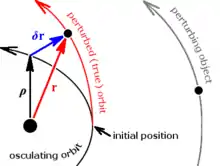 Haciendo que sea el radio vector de la órbita osculante, el vector del radio de la órbita perturbada y la variación de la órbita de osculación, entonces