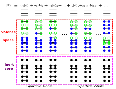 Estas interacciones residuales se incorporan mediante cálculos del modelo de capa en un espacio modelo truncado (o espacio de valencia). Este espacio está abarcado por una base de estados de muchas partículas donde solo están activos los estados de una sola partícula en el espacio modelo. La ecuación de Schrödinger se resuelve sobre esta base, utilizando un hamiltoniano efectivo específicamente adecuado para el espacio modelo. Este hamiltoniano se diferencia del de los nucleones libres en que, entre otras cosas, tiene que compensar configuraciones excluidas.[6]