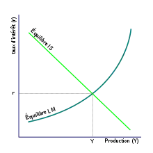 Eso muestra que, en este modelo, un aumento en G o M lleva a un aumento en la renta nacional (Y) y que un aumento en G o disminución en M lleva a un aumento en la tasa de interés (r)[39]