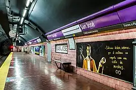 - «Murales alusivos a Moebius en San José». EnElSubte.com. 18 de diciembre de 2014. Consultado el 16 de agosto de 2015. «Pintaron murales que representan escenas y diálogos de ese film, rodado prácticamente en su totalidad en la línea E durante 1996. La estación San José carecía de decoración.»