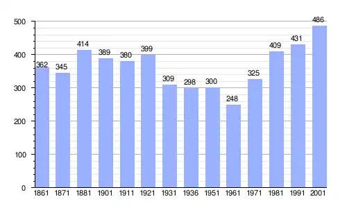 Gráfica de evolución demográfica de Moggio entre 1861 y 2001