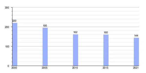 | Gráfica de evolución demográfica de Mojoeira (parroquia) entre 2000 y 2021 |