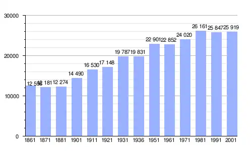 | Gráfica de evolución demográfica de Mola di Bari entre 1861 y 2001 |