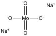 El molibdato de sodio, Na2MoO4, es una muy útil fuente de molibdeno.[2] Se puede encontrar tanto en la forma anhidra como dihidratada (Na2MoO4·2H2O).