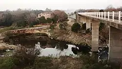 ![]() El molino que le da el nombre a la localidad y el puente de la ruta provincial 11 sobre el arroyo Doll.