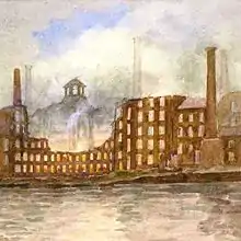 La relación con la producción de seda terminó aproximadamente en 1908, cuando F.W. Hampshire and Company, los químicos, se trasladaron a las instalaciones para fabricar papeles para moscas y medicamentos para la tos. El 5 de diciembre de 1910, a las 5 de la mañana, se produjo un incendio en el molino de harina adyacente de los hermanos Sowter y se extendió a la fábrica de seda. El muro este del molino cayó al río y el edificio quedó destruido. Los bomberos del municipio y la Midland Railway hicieron grandes esfuerzos para salvar el casco de la torre. que salvaron el armazón de la torre y el contorno de las puertas que daban acceso a los cinco pisos originales. Estos se pueden ver hoy en día en la escalera de la torre. El edificio fue reconstruido a la misma altura, pero con tres pisos en lugar de cinco, y sigue siendo así en la actualidad.