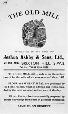 - «OLD MILL IN YARD AT NUMBER 51, BLENHEIM GARDENS SW2 (south off), BRIXTON, LAMBETH, GREATER LONDON». English Heritage. Archivado desde el original el 9 de octubre de 2012. Consultado el 18 de mayo de 2008.