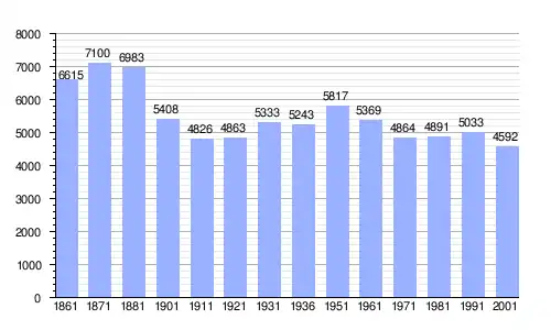 | Gráfica de evolución demográfica de Moliterno entre 1861 y 2001 |