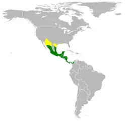 Es nativo de Belice, Colombia, Costa Rica, El Salvador, Guatemala, Honduras, México, Nicaragua, Panamá y el sur de Estados Unidos.[1] Su hábitat natural se compone de bosque y pastizales.[1]
