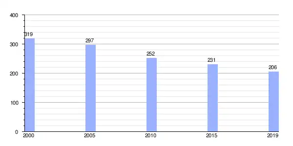 | Gráfica de evolución demográfica de Momán entre 2000 y 2019 |